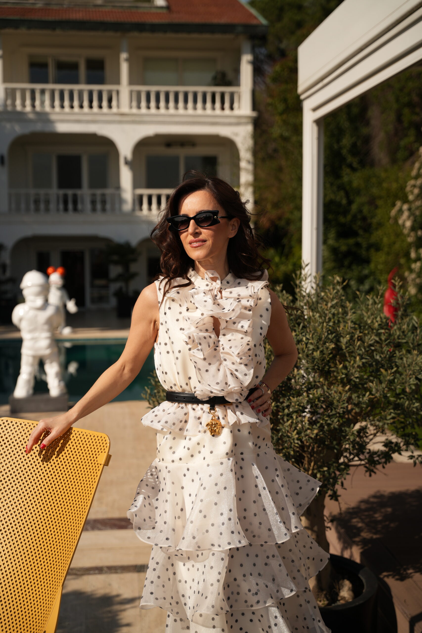 LILLY CHIFFON DRESS WHITE BLACK DOT